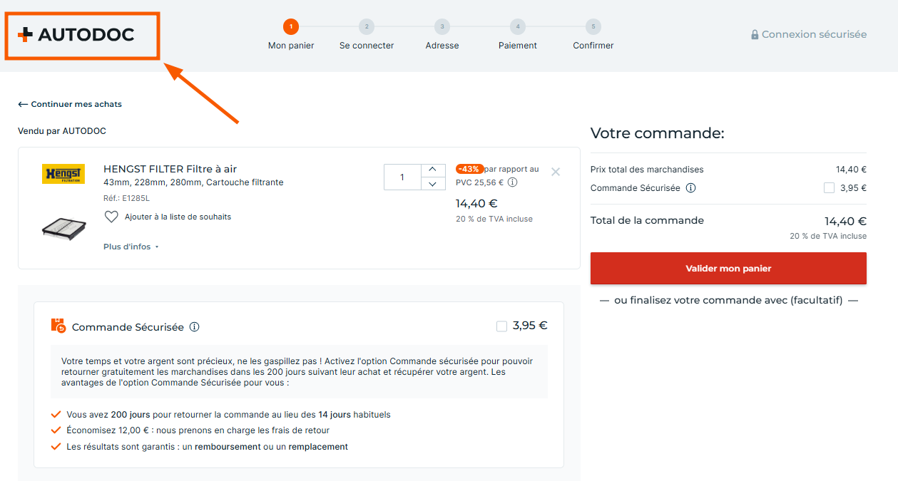 - cliccare sul logo di AUTODOC per continuare l'acquisto